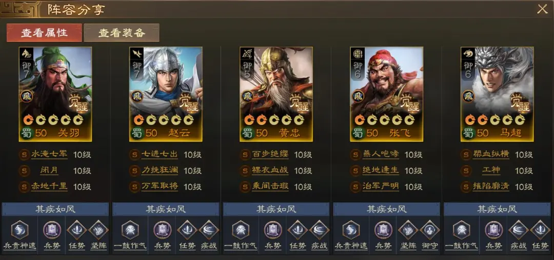 由于没法转阵营,这赛季的蜀骑大部分都是带的庞统,这队属于就算打输也能给对面打出战损,不容易白给的队伍。