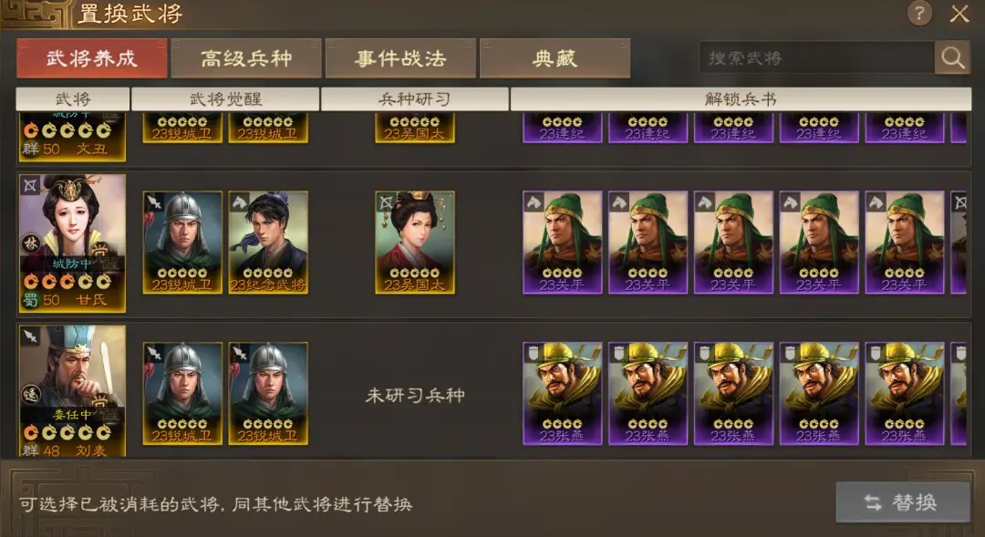 武将重塑有5天CD,可以提前通过这个功能将之前喂了当狗粮的武将卡拿出来,特别是开荒经常要用的卡,比如张春华、吴国太、貂蝉等武将。