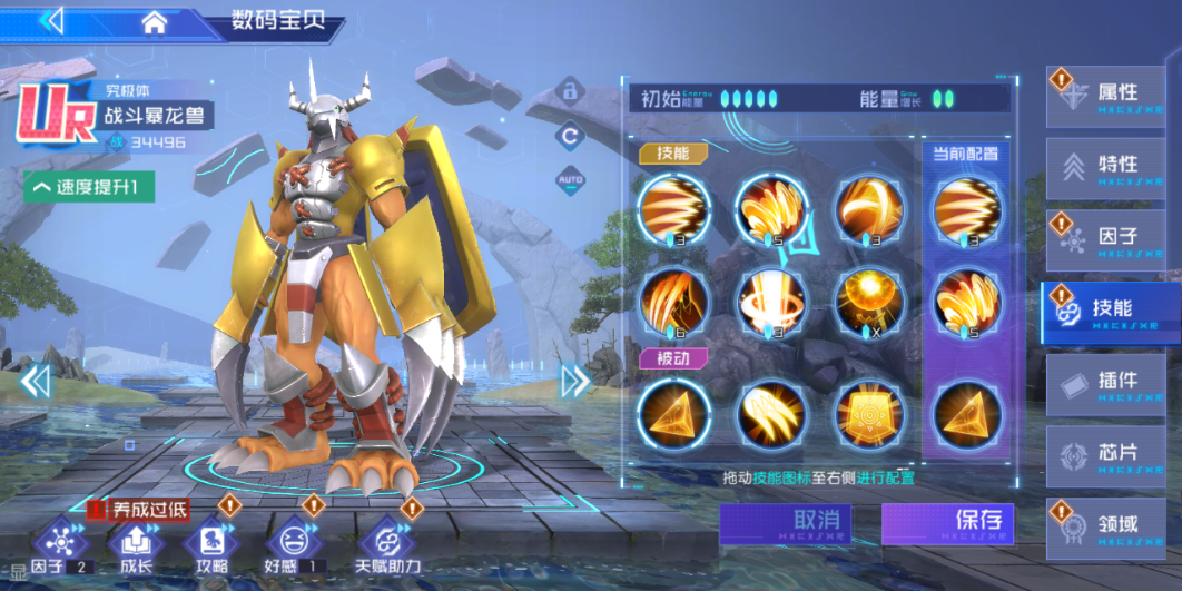 l 功能入口:主界面→【数码宝贝】→选择对应数码宝贝→【养成】→【技能】→【配置】